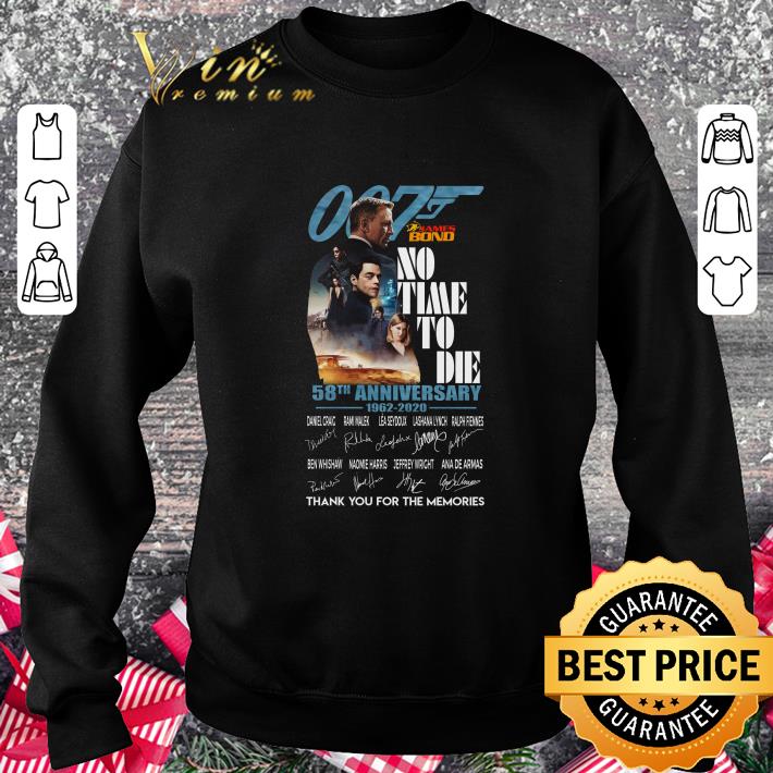 Awesome 007 James Bond no time to die 58th anniversary 1962-2020 signatures shirt, Hoodie, Sweater, Longsleeve T-Shirt For Men and Women