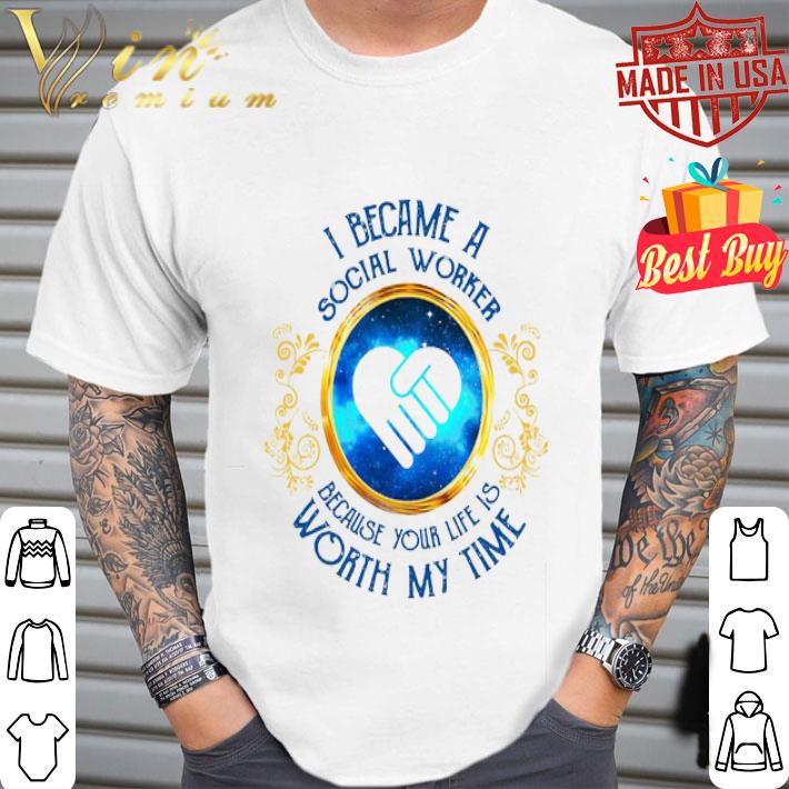 I became a Social Worker because your life is worth my time shirt is an awesome shirt about topic Trending: Social Worker that our team designed for you. LIMITED EDITION with many styles as a hoodie, long-sleeve tee, v-neck, tank-top, sweater, youth tee, sweat shirt. This shirt has different color and size, click button bellow to grab it.
