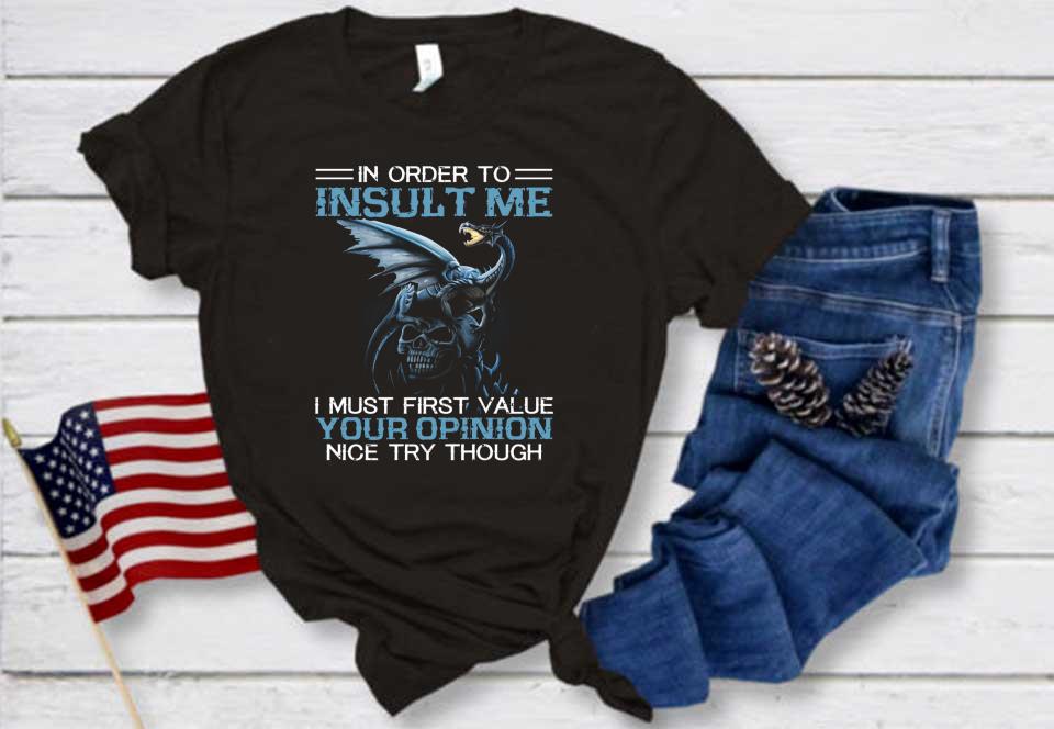 I Must Firt Value Your Opinion Nice Try Though Shirt, Dragon On Skull In Order To Insult Shirt